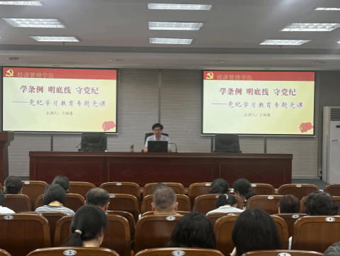 为扎实有序推进党纪学习教育走深走实,5月22日,304am永利集团在南校区图书馆报告厅开展党纪学习教育专题党课,公司党委书记卜树春作“学条例 明底线 守党纪”专题辅导报告,学院全体教职工参加会议。