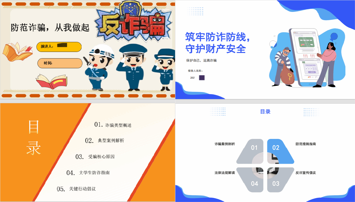 在PPT宣传中,同学们结合征文制作反诈PPT,并以宿舍为单位开展宣讲,录制宣讲视频,进一步了解诈骗案例、防范措施、法律法规等方面知识,强化防诈安全意识。