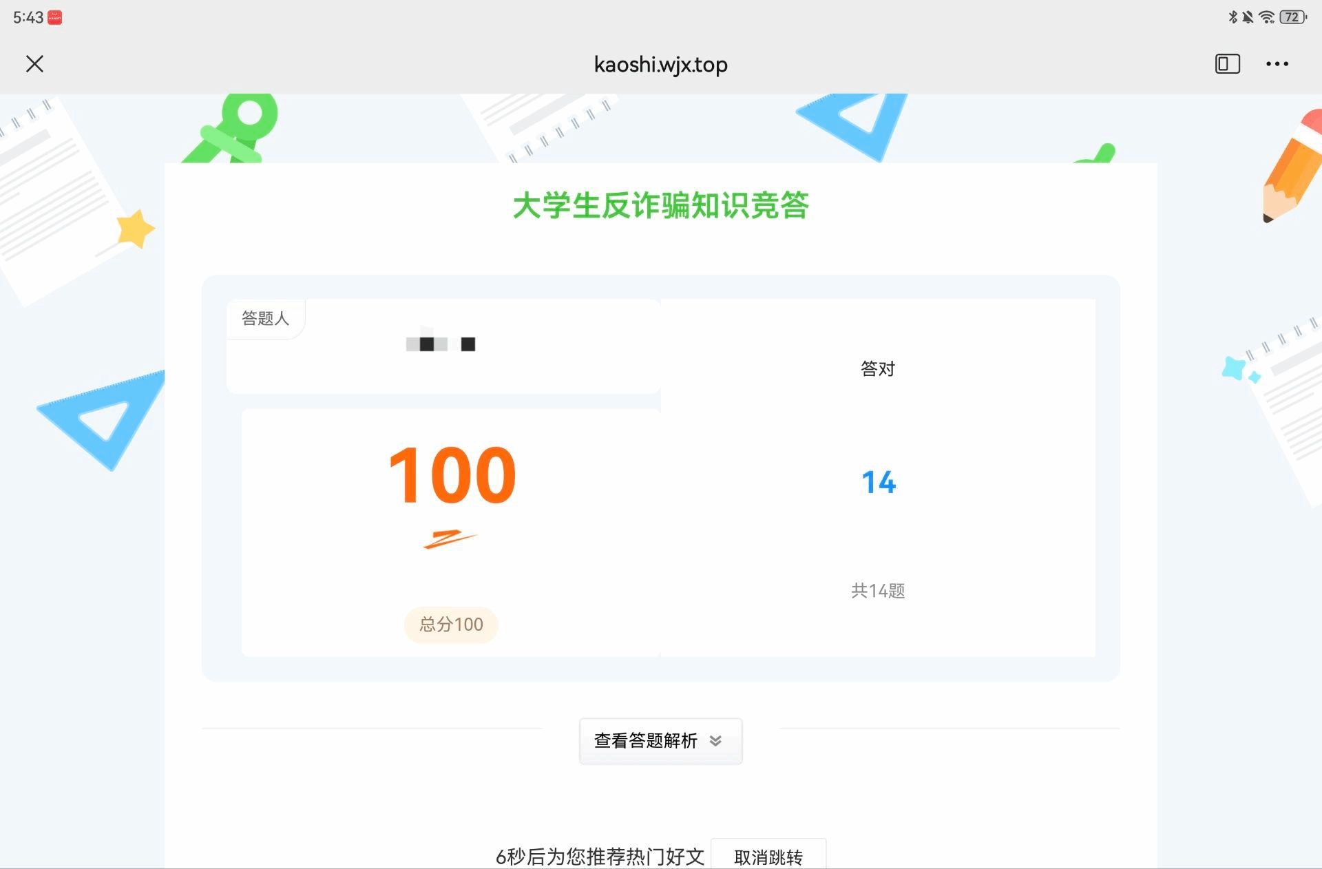 在知识竞赛中,同学们通过扫码二维码方式参与答题,树牢反诈意识,提高防骗能力。