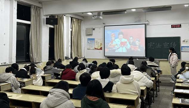 各班级团支部组织观看《新中国第一部宪法的诞生》电教片