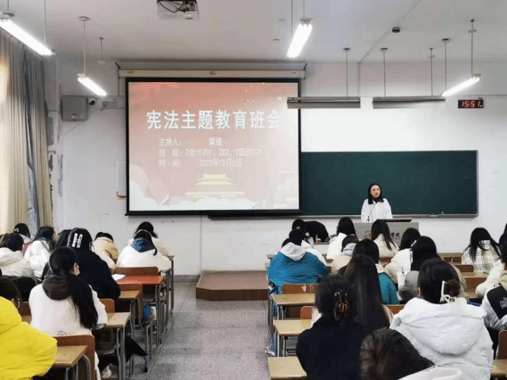 全院各班级团支部开展“学宪法 守宪法 用宪法”主题团日活动,结合生动案例开展学习宣传,观看《新中国第一部宪法的诞生》电教片,收看12月4日《宪法的精神 法治的力量——2023年度法治人物》直播,帮助同学们进一步强化宪法观念,弘扬宪法精神,依法保护自己的合法权益,争做遵纪守法、奋发有为的老员工。