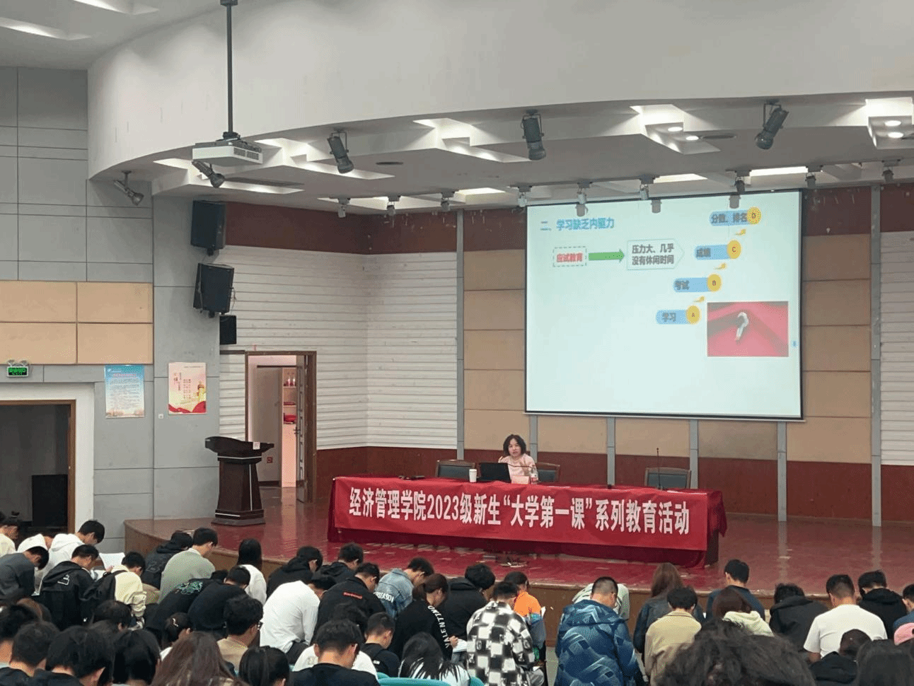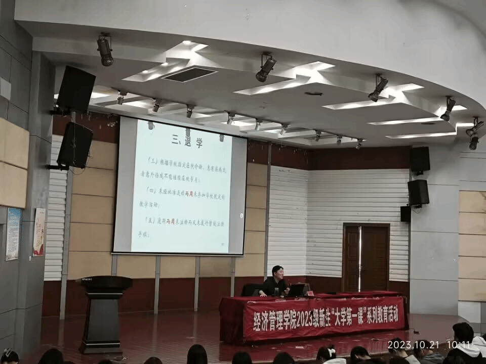 公司邀请校关工委委员施鲁莎、安保处处长张晓东、员工处副处长韦春华、图书馆文献检索教研室主任秦殿启为2023级新生开展入学教育系列专题讲座。公司党委副书记周旺基主持,学工办主任高加友,辅导员老师胡宗群、赵文捷和全体2023级新生参加。