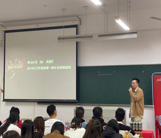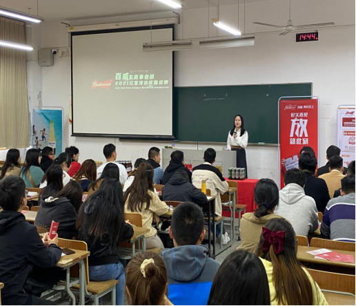 本次招聘宣讲会首先由百威集团东南事业部招聘经理冯婷婷通过播放宣传片、PPT展示、面对面交流等方式向同学们介绍了公司的概况、职业发展方向、人员需求以及选择该单位的理由等。随后,公司19届优秀毕业生吴培鑫介绍了百威集团东南事业部令人无法抗拒的福利体系,最后,在宣讲会结束前,招聘经理冯婷婷在现场与同学进行了一个简短的答疑交流环节,同学们就职业发展、晋升道路、薪资待遇等进行踊跃提问,冯经理给每位提出问题的同学都给予了详细的回答并给出建议。她强调,若想加入百威中国东南事业部集团这个大家庭,并对红星培训生项目感兴趣的同学可以在校园招聘宣讲会结束后,在网上申请报名相关事宜,安排一对一面试。