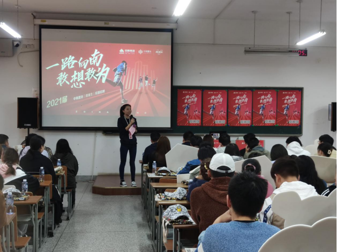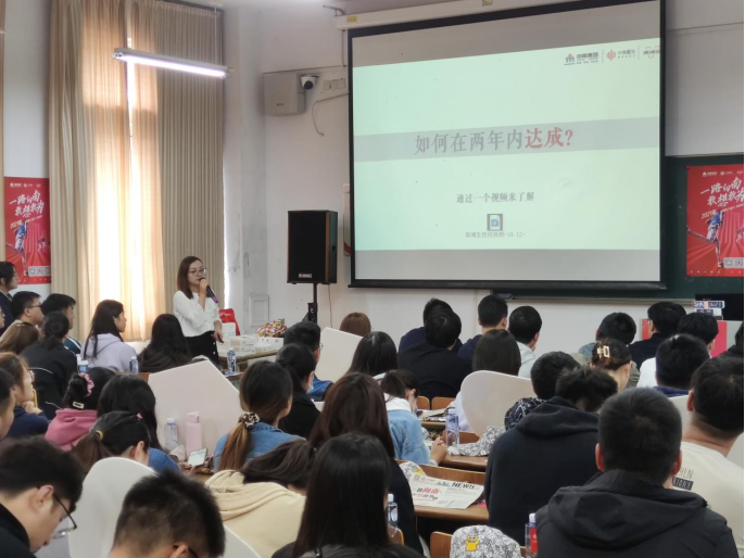 会议开始,负责人薛永亮向大家介绍了自己并开始主题分享,他向介绍了房地产相关信息以及为什么选择中南置地的。随后,负责人贺婧介绍了南埔生培养方案,并播放视频,吸引了广大毕业生的注意力。随后,工作人员介绍了自己的工作经历,并强调进中南以来赚到了钱,交到了朋友,并有了投资意。她给毕业生们送了一句话“你很普通!你不普通!”。接着,进入到提问环节,毕业生们对工作要求,工作薪资以及能力要求十分感兴趣。三位负责人热情地解答了问题,他们认为只要敢想敢为,有梦想有冲劲就可以进入中南。最后,现场进入激烈的抽奖环节,同学们都认真回答了问题,并拿到了丰厚的奖品满载而归。