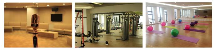 3、优良办公环境,职场内设置娱乐场所:KTV、瑜伽室、健身房等、台球桌等;