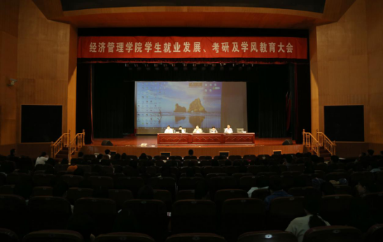 10月10日下午,304am永利集团在希望大道校区行政楼报告厅召开2019届毕业生就业发展、考研及学风教育大会。公司党委书记卜树春、校国际合作交流处副处长钱瑛琴、公司党委副书记周旺基、院教科研办公室主任喻淑兰、毕业班辅导员及2019届毕业班全体同学900余人参会。