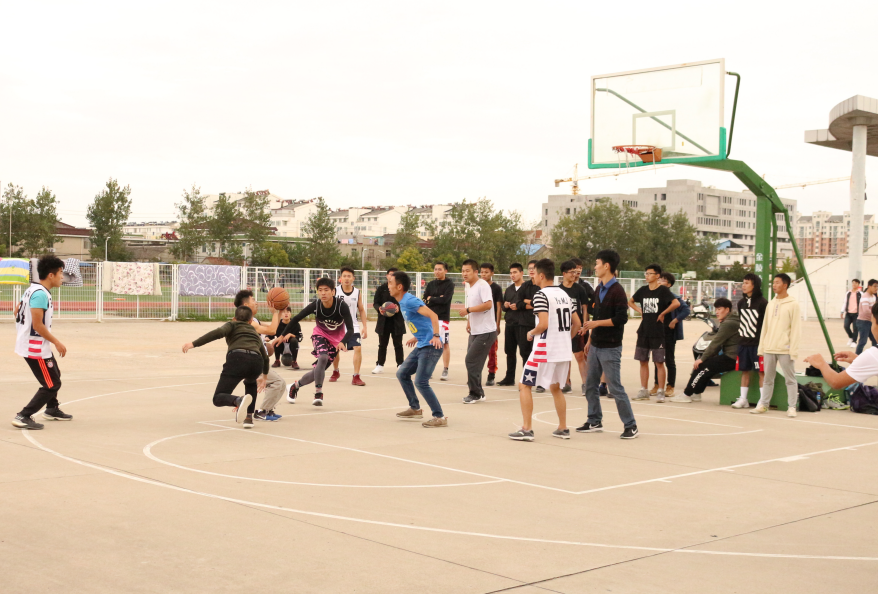 座谈会后,员工们还与学院篮球队在北校区篮球场开展一场篮球友谊赛。比赛一开始,双方球员跃跃欲试,在禁区内进行了积极的抢拼,员工们虽然已经毕业多年,但依然配合默契。但是在体力和速度上员工更胜一筹,第一节比赛结束,员工队以12:6暂时领先。第二节比赛开始,员工队凭借多年的经验和对篮球的热爱,发挥出色,将他们认识十年以来建立的默契发挥的淋漓尽致,连续投球得分。员工队也不甘落后,比分一度追平。最终,员工队以47:43险胜。