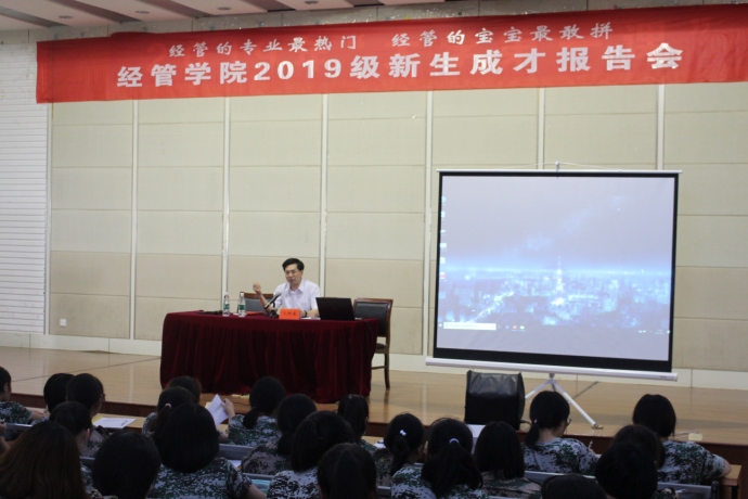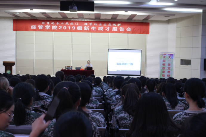 9月11日,304am永利集团在北校区图书馆报告厅召开2019级新生成才报告会,公司党委书记卜树春、经理助理、MPAcc中心主任李争光出席,学院学工办主任陈广正、学院团委副书记张成联、新生辅导员和全体2019级新生参加。公司党委副书记周旺基主持。