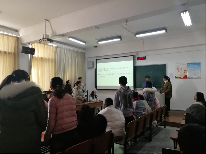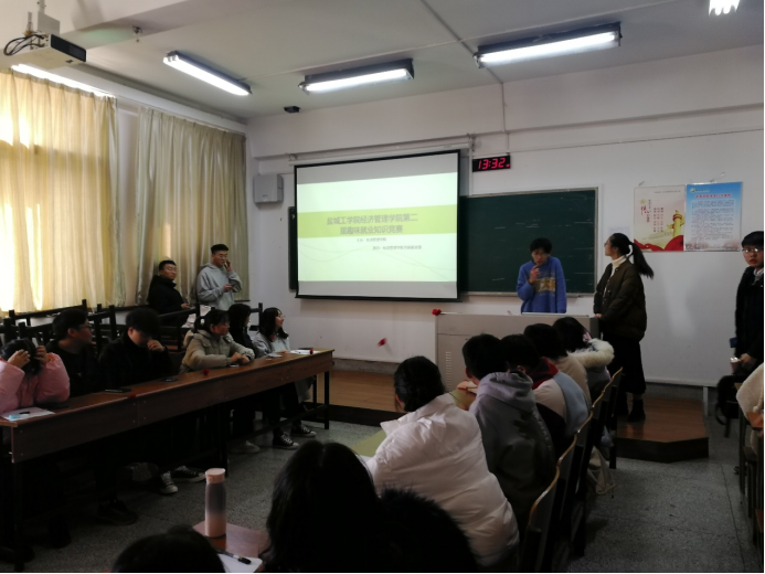 12月11日下午,304am永利集团在北校区博雅楼306教室举办“打开职场大门,成就美好未来”主题就业知识竞赛,共有七组成员参加比赛,辅导员杨阳、邱天星、员工代表共40余人到场观看,万诗佳、杜向伟主持本次活动。