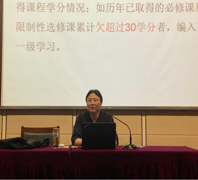 开讲前,李爱国首先从两个问题出发,介绍毕业需要达到什么条件,学分、绩点、平均绩点的含义和联系。随后,李爱国详细介绍了课程考试与成绩记载、降级、休学和复学、退学和毕业以及培养方案与课程的具体内容,并着重提醒不可无故缺席课程,指出缺课行为的严重性。他强调,老员工的第一要务是学习,不可存在侥幸心理。