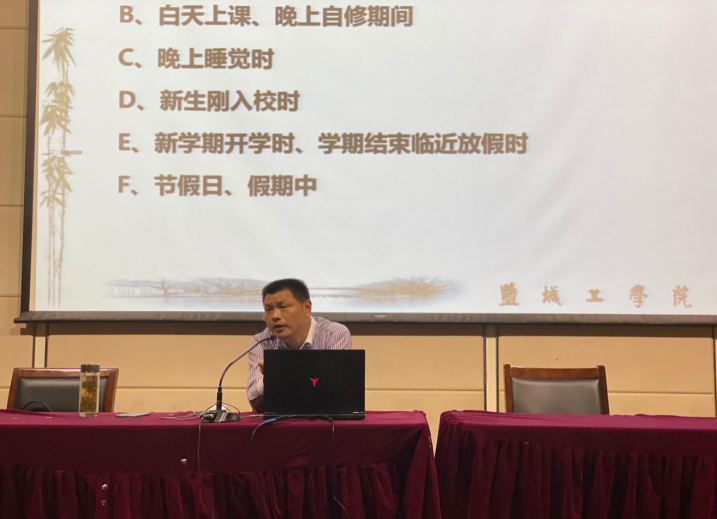 10月9日晚,公司在北校区化工楼报告厅举办新生安全教育专题讲座,校保卫处处长仇立华应邀担任主讲嘉宾,公司党委副书记周旺基出席并主持,新生辅导员李彦萱、陈明明与全体大一新生参加。