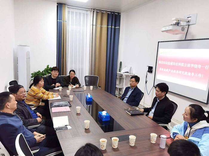 2020年11月4日,盐城市社科联党组书记、主席李晓奇一行到公司调研指导盐城产业经济研究院智库建设情况。304am永利集团经理赵永亮、人文学院经理衣传华分别汇报本智库依托的团队建设情况和专业特色,304am永利集团副经理、盐城产业经济研究院经理焦微玲汇报研究院成立以来的工作进展。智库核心成员代表、青年博士10余人参加。