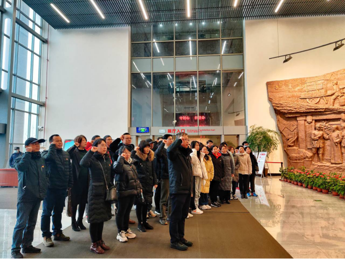 重温入党誓词,不忘初心使命。新四军黄桥战役纪念馆展陈面积8000平方米,共分八个展厅,对黄桥战役进行了全方位展示,一件件实物、雕塑和图片,如同一幅幅展开的历史画卷,展现了在党的领导下,黄桥人民奋勇支前的生动场景,呈现了新时期黄桥的崭新面貌。在讲解员的引导下,教工党员们参观了新四军黄桥战役纪念馆,追忆革命历程,回首峥嵘岁月,坚定理想信念,以行动担负起党员的使命和责任。全体教工党员还在新四军黄桥战役纪念馆一楼展厅,面对党旗庄严宣誓,重温入党誓词。他们表示,要认真学习习近平总书记重要讲话精神,认真学好党史、新中国史、改革开放史和社会主义发展史,肩扛时代使命,保持共产党人的初心,争做时代的奋进者,努力提高教学科研水平,为培养合格人才尽心尽责,为校院事业发展贡献力量。