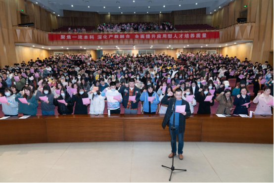 陈广正带领员工做考研就业集体宣誓