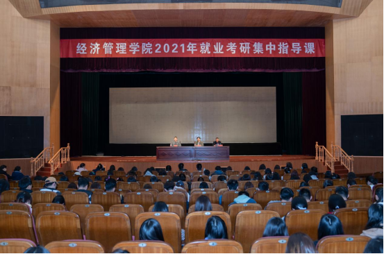 公司党委副书记周旺基布置毕业班安全工作,经理助理、MPAcc中心负责人李争光做考研复试调剂动员,学工办主任陈广正带领全体毕业班同学进行考研就业集体宣誓。