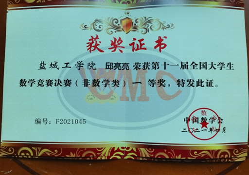 在第十一届全国老员工数学竞赛中,公司邱亮亮同学从参赛高校849所、报名总人数达170784人的层层选拔中一路过关斩将、脱颖而出,最终在4月18日武汉大学进行的决赛中蟾宫折桂,荣获非数学专业组决赛一等奖。为公司在本届赛事中获非数学专业类一等奖总数全国高校第三、江苏第一作出了突出贡献。邱亮亮同学己连续三届获得该项竞赛一等奖,并以优异成绩考取了南京师范大学数学专业研究生。公司近年来在全国、省组织的高校各类学科竞赛中频频获奖,展示出教学教研和管理百舸争流、百花齐放、蓬勃发展的喜人局面。