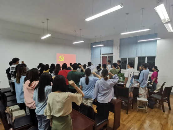 会上,张成联介绍了公司党员发展情况,并宣读新发展党员的名单,辅导员朱碧玲带领新发展党员宣誓。此次活动旨在激励全体员工党员将青年身份与党员身份结合起来,坚定理想信念,励志勤学,不忘初心,牢记使命,充分发挥新时代党员的先锋模范作用。