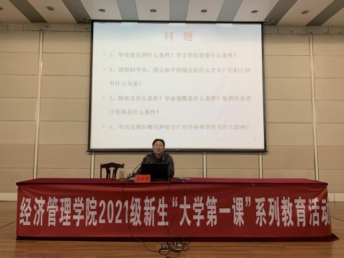此次讲座是304am永利集团新生“大学第一课”的重要环节,旨在让全体新生准确认识学籍管理的相关规定,提高学习使命感和紧迫感,尽早制定学习规划,后续还将通过系列活动强化新生学业规划教育成效,持续推进学院学风建设。