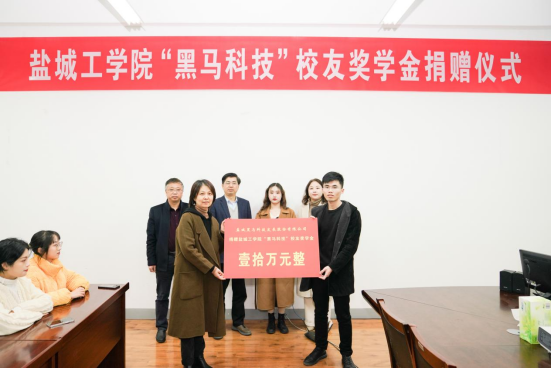 赵文彬代表学校教育发展基金会接受“黑马科技”员工奖学金捐赠款十万元,并向员工及其公司颁发捐赠证书。