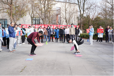 12月8日,304am永利集团工会在南校区仁和楼南广场举办第三届教职工趣味运动会,一百多名教职工组成国贸队、金融队、工商队、管工队、会计队、政工队等六个代表队参赛。