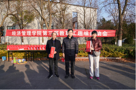趣味运动会按照“快乐和友谊第一,比赛和竞技第二”的原则,共设置齐心协力、A4纸接力、摸石过河、一通到底、运瓜接力、蛟龙出海等6个团体项目。现场气氛热烈、趣味十足,老师们兴高采烈地参与比赛项目。经过激烈欢快的角逐,政工队获得团体一等奖,会计队、工商队获得团体二等奖,金融队、国贸队、管工队获得团体三等奖,周旺基、张登兵、潘坤友、李争光为获奖代表队颁奖。
