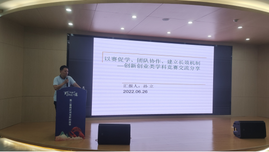 实验中心主任孙立副教授作《创新创业类学科竞赛经验交流》,结合学院创新创业和学科竞赛开展现状,重点介绍了在“以赛促学、以赛促教”方面的一些经验和体会。分别从员工和老师的角度,分析了大创项目成功的要素,强调了老师在项目研究、指导创新过程中的重要性,一个优秀的大创项目,需要有良好的项目背景、老师、团队做支撑,需要用充足的时间与耐心对待。