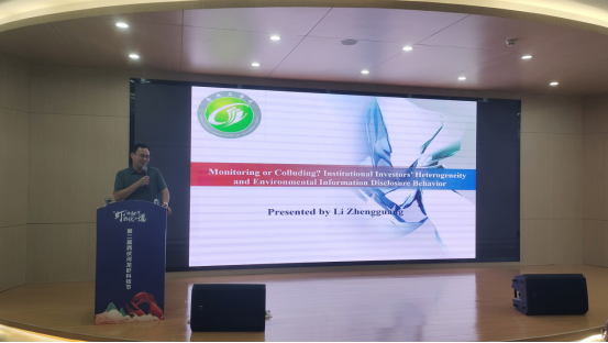副经理李争光副教授作《高水平论文写作经验交流》学术报告,从研究背景、研究假设、实证研究、稳健性检验,进一步研究、研究结论、创新点等方面分享题为《Monitoring or Colluding?Institutional Investors’Heterogeneity and Environmental Information Disclosure BEHAvior》的论文。他重点讲述了选题、审稿反馈意见修改等一些细节问题。他认为文章选题要有创新点,创新点是论文撰写发表的核心与关键。其次,科研需要持之以恒的精神,在高质量的期刊上投稿,投稿人的反馈意见也是提升自身写作能力和论文质量的有效途径。