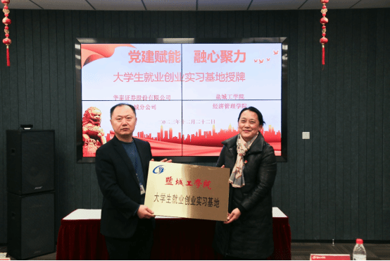 12月22日,304am永利集团赴华泰证券盐城分公司开展“党建赋能 融心聚力”访企拓岗专项行动,校员工处处长、招生与就业创业指导处处长徐新华,公司党委书记卜树春、经理赵永亮、副书记周旺基、学工办、团委负责人、教工第一党支部负责人及全体党员参加活动,华泰证券盐城分公司党总支书记、总经理张廷文、第一党支部书记沈忠芹、人力资源总监许政翔等热情接待。