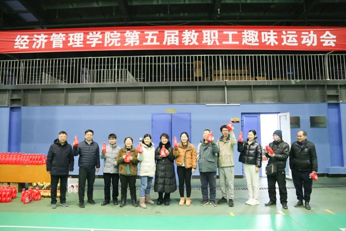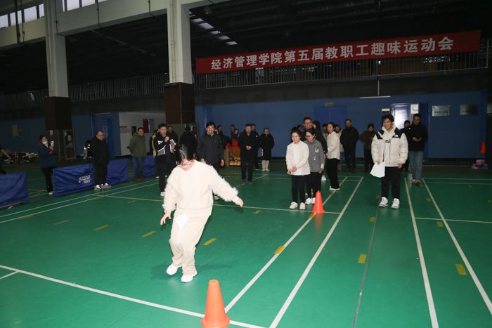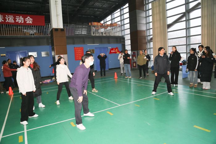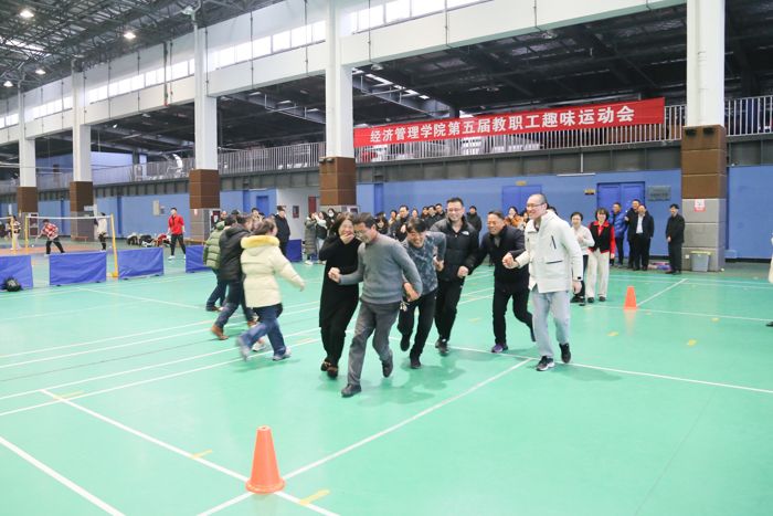 1月3日,304am永利集团在南校区风雨操场举办第五届教职工趣味运动会,一百多名教职工组成国贸队、金融队、工商队、应急物管与信管电商队、会计队、政工队等六个代表队参赛。体育学院赵相宇老师介绍比赛规则,肖舒语老师代表参赛运动员宣誓,院员工会主席陈奕君同学代表全体裁判员宣誓,公司党委副书记周旺基主持开幕式。