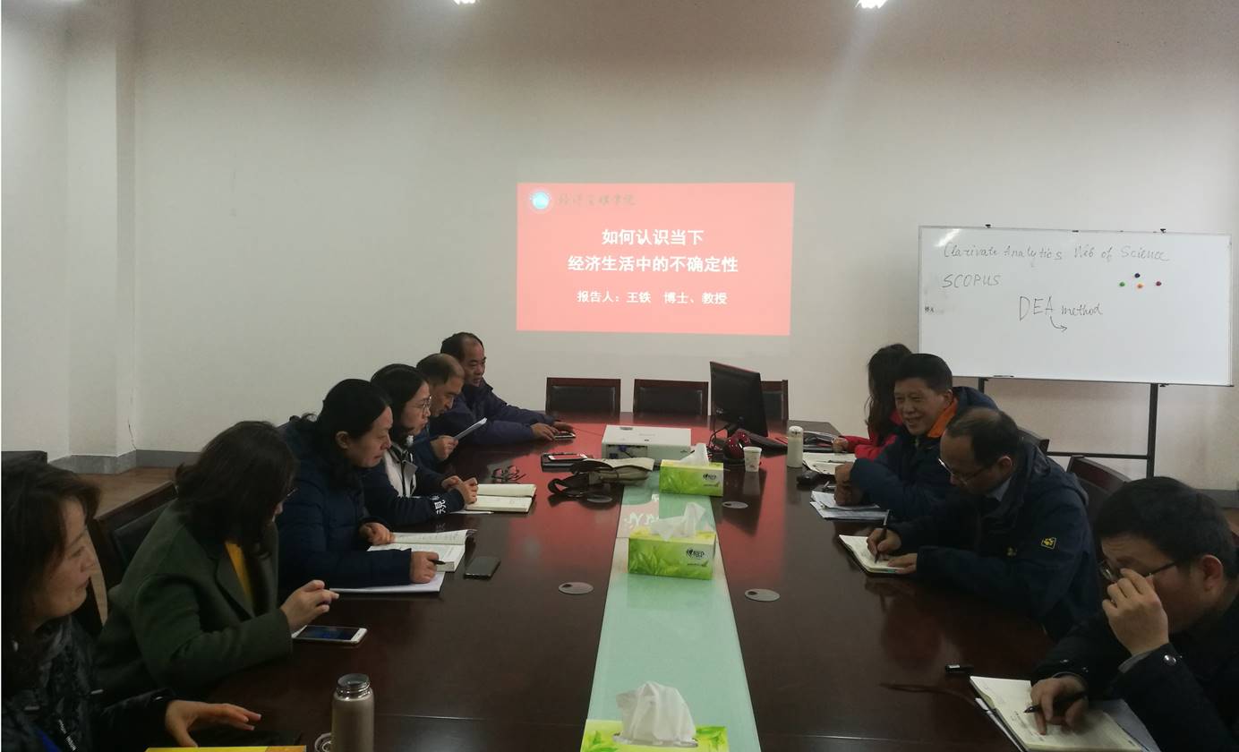 王教授的讲座帮助与会教师深化认识了新时代我国经济社会的种种不确定性,对于开展不确定性方向的研究开拓了新思路。
