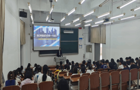 黄国标采用理论和案例相结合的形式,结合自身工作经验经历和人生阅历,从认识自我、确立目标、跨界思维、认知升级、迅速行动五个方面,建议广大新生给自己画一张像、弄清楚想去何方、向前后左右借力、培养数据思维能力、重视行动力养成。鼓励同学学好专业知识、学习写作、苦练表达,尽早规划自己兴趣爱好的职业方向,用实际行动为大学四年的学习生活奠定坚实基础。